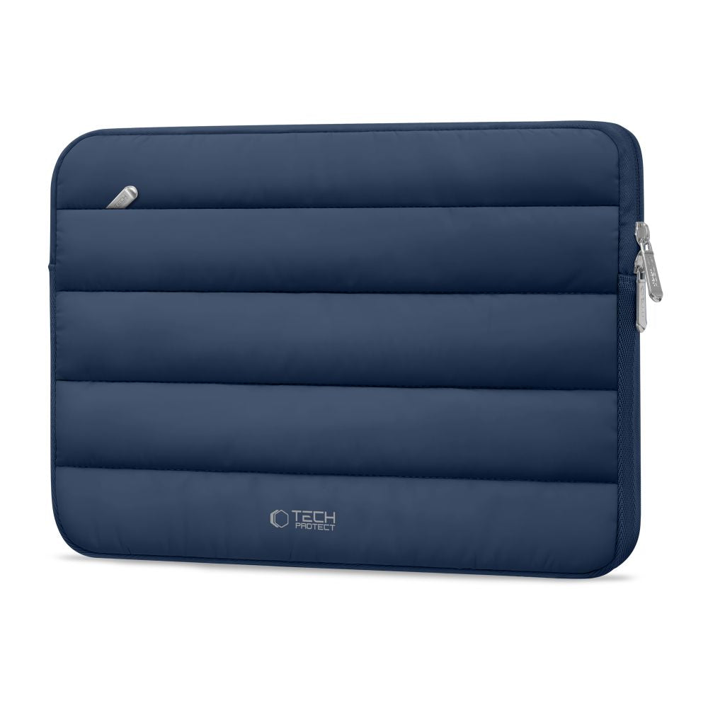 The case features two practical pockets – a main compartment for a laptop and an additional, smaller pocket on the front, perfect for accessories, documents, or small items. An elegant metal clasp and a discreet Tech-Protect logo complete the design, emphasizing the modern and minimalist design.