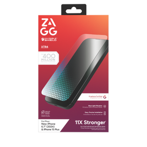 11 KARTŲ STIPRESNIS „XTR4“ – tai tvirčiausia ir technologiškai pažangiausia „ZAGG“ ekrano apsauga. Sutvirtinta grafenu – viena tvirčiausių pasaulyje medžiagų, ji buvo išbandyta ir nustatyta, kad yra iki 11 kartų stipresnė už tradicinę stiklinę ekrano apsaugą. PAGERINTAS AKIŲ KOMFORTAS IR MIEGAS „XTR4“ – tai pirmoji pasaulyje ekrano apsauga su „Radiance Protection Factor 60“ technologija, kuri filtruoja mėlyną šviesą, galinčią sutrikdyti miegą. GERESNIS SPALVŲ ATGAIVINIMAS Antirefleksinė technologija padidina šviesos pralaidumą, pagerina ekrano aiškumą ir praturtina spalvas gilesne juoda, tikra mėlyna ir ryškesne raudona spalvomis. PADIDINTA APSAUGA NUO ĮBRĖŽIMŲ „XTR4“ stiklas turi nano priedų paviršių, todėl yra neįtikėtinai kietas ir atsparus įbrėžimams. MAKSIMALUS JAUTRUMAS LIETIMUI „XTR4“ turi SiO2 sustiprintą dangą, kad būtų užtikrintas maksimalus lietimo jautrumas, ir neįtikėtinai lygų paviršių, kad slystų greitai ir be trinties, todėl idealiai tinka žaidėjams. PAPRASTAS, BE DULKIŲ MONTAVIMAS „XTR4“ įdiegti labai paprasta. Kartu su apsauginiais klijais nuo dulkių ir „EZ Apply“ tvirtinimo dėklu, kad galėtumėte būti tikri, jog stiklas idealiai sulygiuotas klijuojant jį prie ekrano. ANTIBAKTERINĖ DANGA Antibakterinė danga apsaugo ekrano apsaugą nuo mikroorganizmų sukeliamo ardymo. „TÜV RHEINLAND GREEN MARK“ SERTIFIKUOTAS PRODUKTAS „XTR4“ pagamintas iš 30 % panaudoto stiklo, jo tvirtinimo dėklas – iš 100 % perdirbtų medžiagų, o pakuotė – 100 % perdirbama. FSC SERTIFIKATAS „XTR4“ pakuotę sertifikavo FSC – organizacija, dirbanti siekiant apsaugoti sveikus miškus.