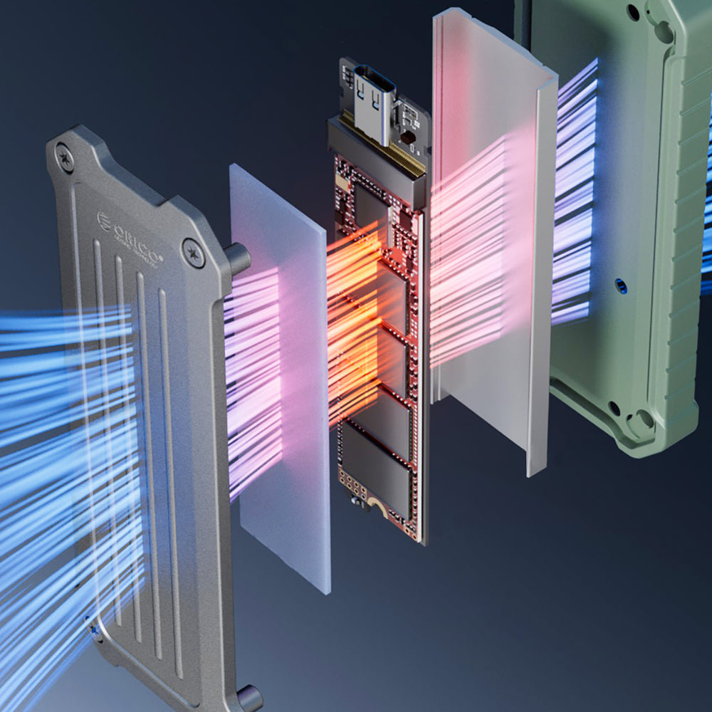 Wzmocniona kieszeń dyskowa Orico OTPX-G2 M.2 NVMe/SATA SSD USB-C 3.2 taktyczna - szaro-zielona