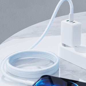 Acefast USB Type C - Lightning cable for charging and data transfer. It is designed for Apple devices with a Lightning connector. It is 120 cm long and is designed to work with a current of 30W and 3A. It is compatible with Power Delivery fast charging. It has an MFI (Maide For iPhone) certificate, so the phone will not display a message about a non-genuine accessory.