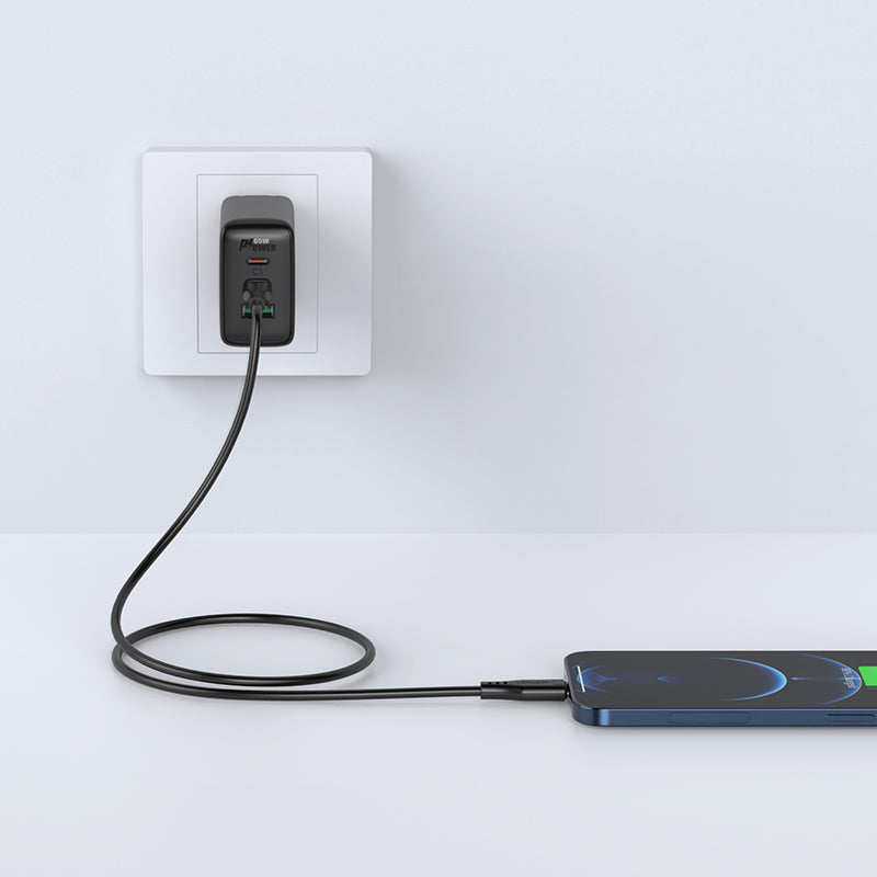 USB Type C - Lightning cable for charging and data transfer by Acefast. It is designed for Apple devices with a Lightning connector. It is 120 cm long and is adapted to work with a current of 30W and 3A. It is compatible with Power Delivery fast charging. It has an MFI (Maide For iPhone) certificate, so the phone will not display a message about a non-genuine accessory.