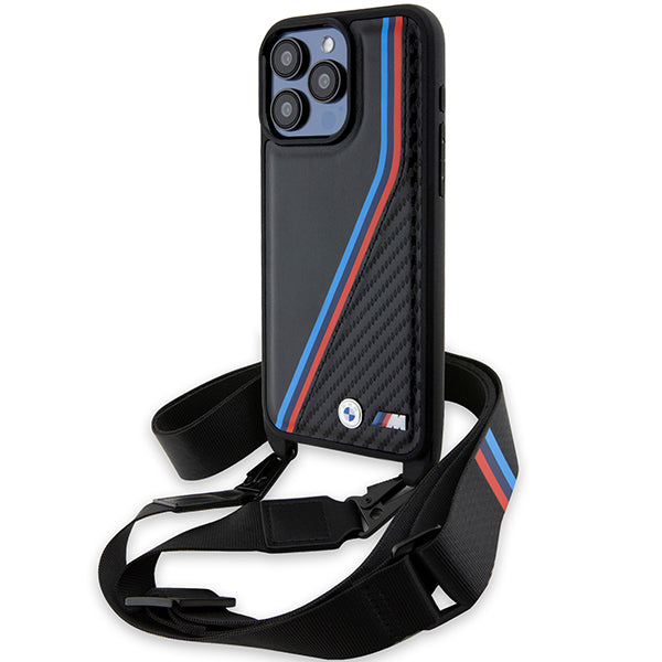 BMW M Edition Carbon Tricolor Lines & Strap case for iPhone 15 Pro Max - black