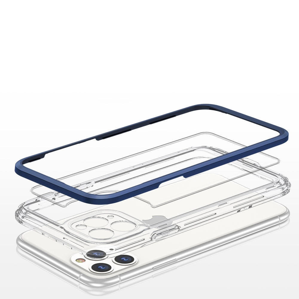 Clear 3in1 case for iPhone 11 Pro Max blue frame gel cover