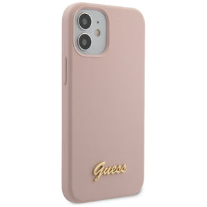 Guess GUHCP12SLSLMGLP iPhone 12 mini 5.4" light pink/light pink hardcase Silicone Script Gold Logo