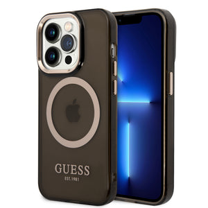 Guess GUHMP14XHTCMK iPhone 14 Pro Max 6.7" black/black hard case Gold Outline Translucent MagSafe
