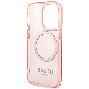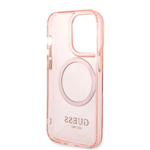 Guess GUHMP14XHTCMP iPhone 14 Pro Max 6.7" pink/pink hard case Gold Outline Translucent MagSafe