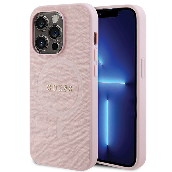 Guess GUHMP14XPSAHMCP case for iPhone 14 Pro Max - pink Saffiano MagSafe
