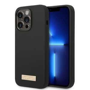 Home Guess GUHMP14XSBPLK iPhone 14 Pro Max 6.7" black/black hard case Silicone Logo Plate MagSafe