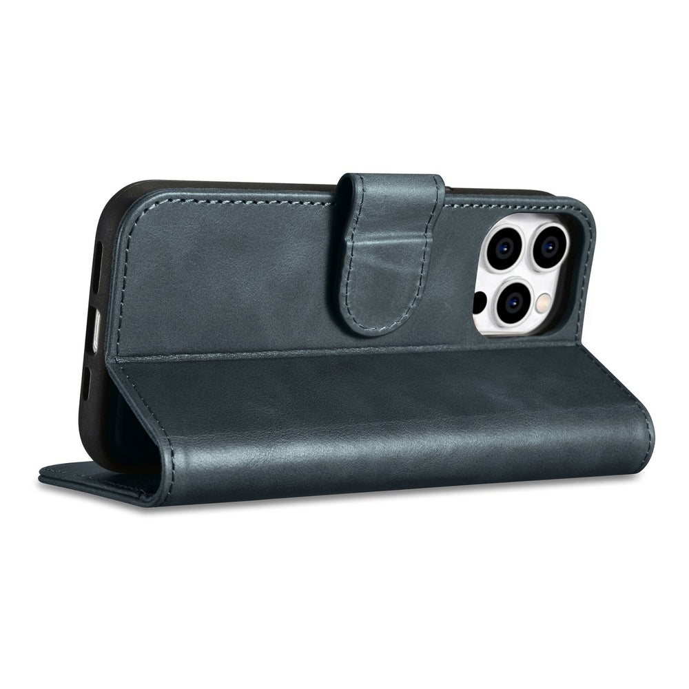 iCarer Oil Wax Wallet Case 2in1 Cover iPhone 14 Pro Anti-RFID Leather Flip Case Blue (WMI14220722-BU)
