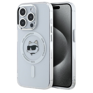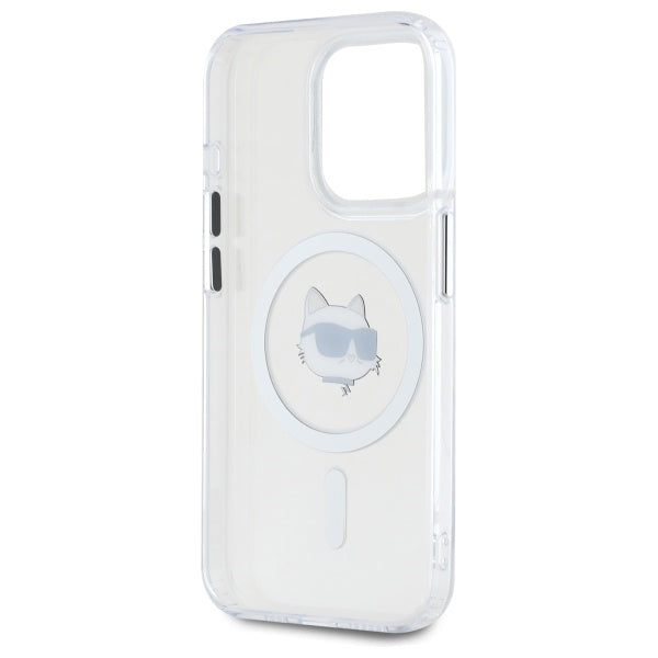 Karl Lagerfeld IML Metal Choupette Head MagSafe Case for iPhone 15 Pro Max - White
