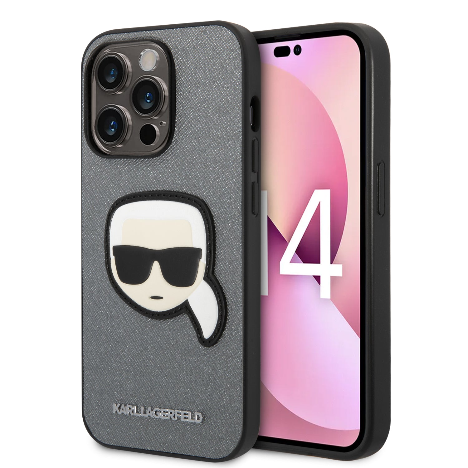 Karl Lagerfeld Saffiano Karl's Head Patch case for iPhone 14 Pro Max - silver