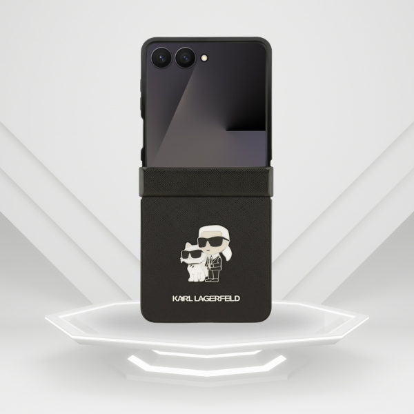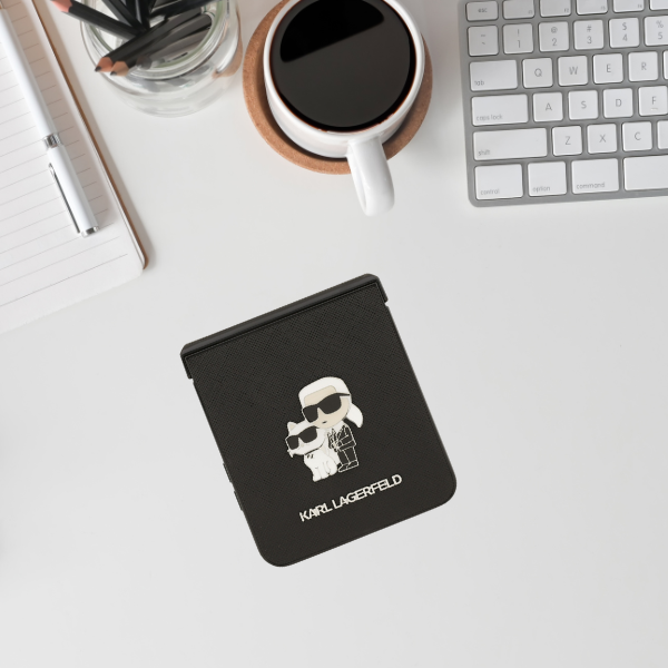 Karl Lagerfeld Saffiano Karl&Choupette Pin Case for Samsung Galaxy Z Flip 7 - Black