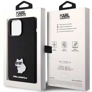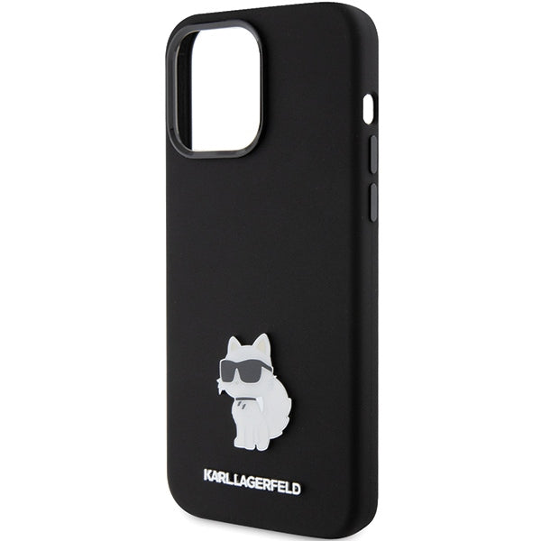Karl Lagerfeld Silicone Choupette Metal Pin case for iPhone 15 Pro Max - black