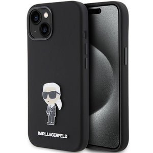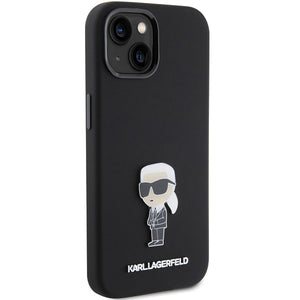 Karl Lagerfeld Silicone Ikonik Metal Pin case for iPhone 15 - black
