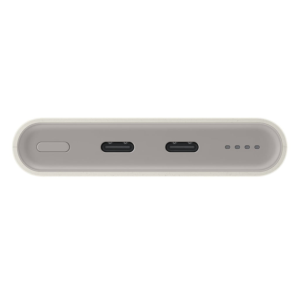 The beige finish adds elegance, and the compact design makes it easy to take the power bank with you on any trip. Its lightness and size make it unnoticeable in your luggage.