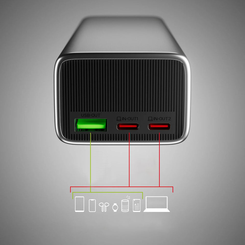 - Slim design and durability: The aluminum housing and compact profile make the power bank the perfect travel and work companion.