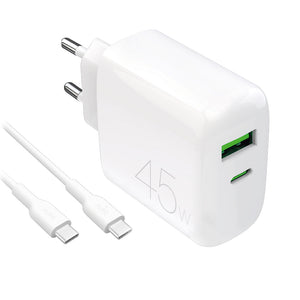 Puro Daily Prolite 45W USB-C USB-A Power Delivery Charger with USB-C Cable - White