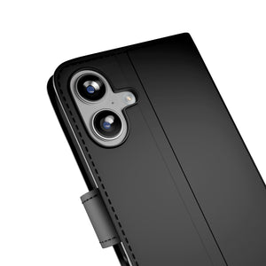 Puro Wallet Stand case for iPhone 17 made of eco-leather, with a flap, wallet and stand function - black