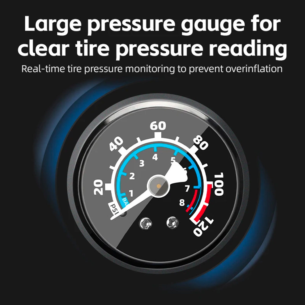 - The ability to work with pressure up to 120 PSI ensures effectiveness in any situation . Works with various types of tires.