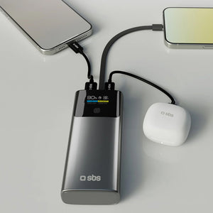 SBS 10000mAh PD 20W Powerbank with LCD Display and Built-in USB-C Cable - Gray