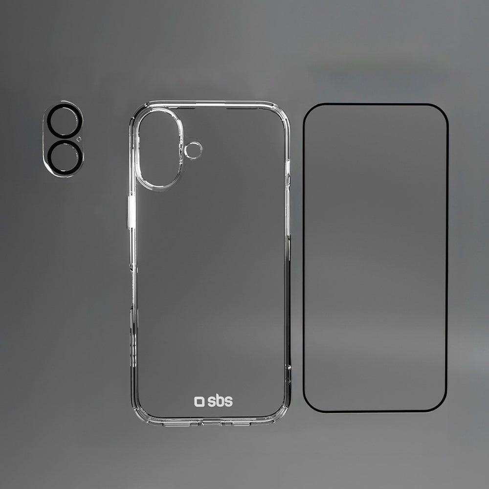 SBS set with D3O technology for iPhone 16 - case + glass screen and camera protector - transparent