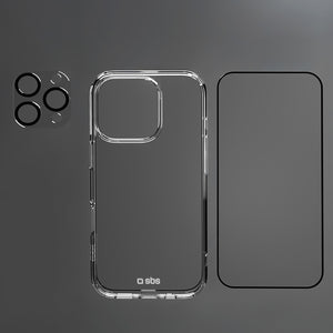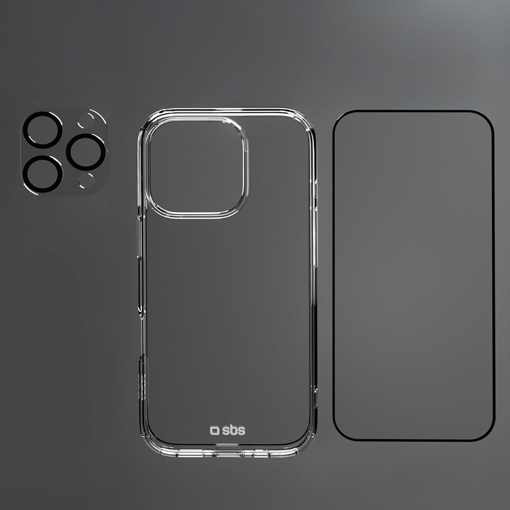 SBS set with D3O technology for iPhone 16 Pro - case + glass screen and camera protector - transparent