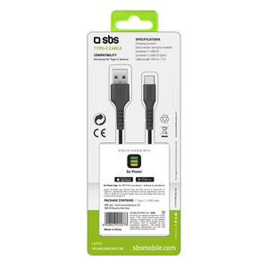 SBS TECABLEMICROC15K USB-A - USB-C Cable 1.5m - Black