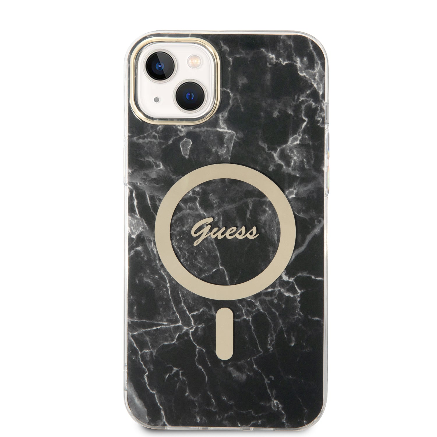Set Guess GUBPP14SHMEACSK Case+ Charger iPhone 14 6.1" black/black hard case Marble MagSafe
