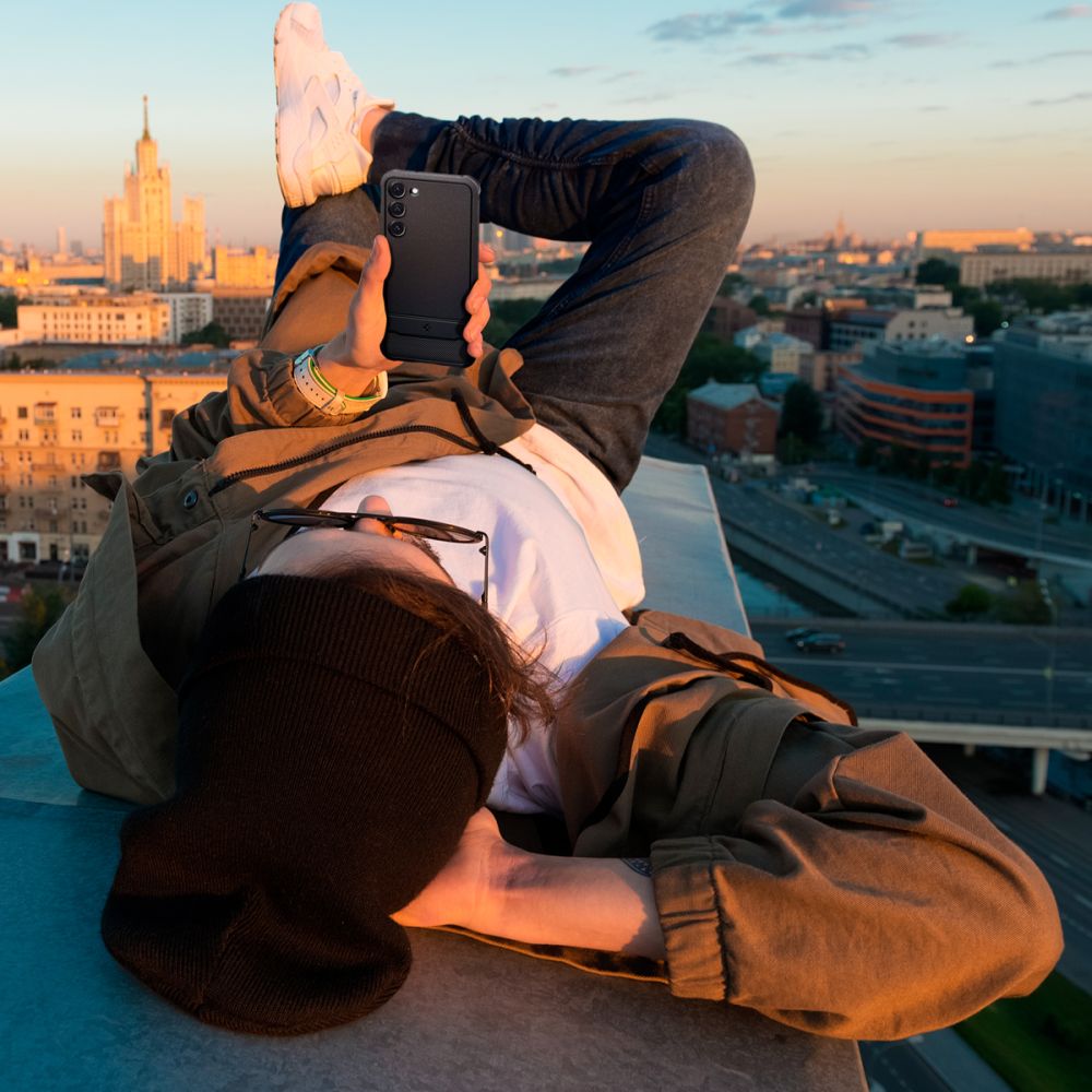 Relatively thin protective case. Made of durable and flexible TPU material resistant to abrasion. Rugged Armor is covered with shiny carbon fiber, which creates an elegant carbon texture. The product is perfectly fitted, fully functional, does not restrict access to external ports and effectively protects the device from scratches or falls. Rugged Armor tempts with its modern design!