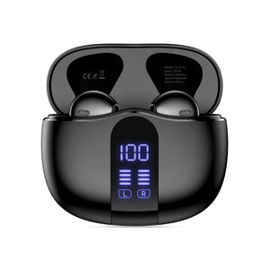 The LED display in the case shows the current charge level of the earbuds and battery, so you always know when it's time to refill them.