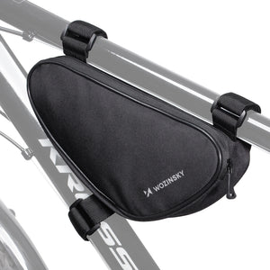 Discover a triangular bicycle frame bag that's a great solution for both city roads and forest trails . The Wozinsky WBB11BK is an incredibly lightweight frame bag that adds almost no weight to your bike while riding . Its minimalist design and color palette make it a perfect match for many bike models . A sturdy zipper protects your belongings from dirt, falling out, and sun damage .