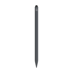 ZAGG Pro Stylus 2 Dual-Sided Stylus with Wireless Charging Take notes, sketch, annotate documents, scroll, and more. The Pro Stylus 2 is the perfect accessory for professionals, artists, students, and anyone who wants to enhance the functionality and comfort of their iPad. TWO IN ONE Both ends of the Pro Stylus 2 have their uses. The thin, pencil-shaped tip is for precise writing and drawing, while the rounded tip allows for comfortable swiping and scrolling. With the Pro Stylus 2, you can edit photos more precisely and avoid smudging fingerprints on the screen. WIRELESS CHARGING The Pro Stylus 2 has a long-lasting battery that lasts up to 6.5 hours. To recharge it, you can use the included charging stand (to which the stylus attaches magnetically), your iPad Pro, or any Qi wireless charger. When charging, the LED on the charging base lights up. TILT AND PALM TOUCH RECOGNITION Pro Stylus 2 recognizes the tilt of your fingertips, allowing you to vary the width of your strokes. Even if you accidentally touch the screen with your palm, it won’t interfere with the stylus path. Pro Stylus 2 comes with a spare tip. CLICK! DONE To turn on Pro Stylus 2, simply press down on its round, capacitive tip. The stylus turns off after 15 minutes of inactivity. MAGNETIC MOUNT Pro Stylus 2 magnetically attaches to iPad Pro 11 and iPad Pro 12.9. SPECIFICATIONS COMPATIBILITY Pro Stylus 2 can be used with apps that support Apple Pencil, as well as all 2018 iPad models and newer. PACKAGE CONTENTS • USB-C charging cable • Pro Stylus 2 • Quick start guide WEIGHT 108.86 g